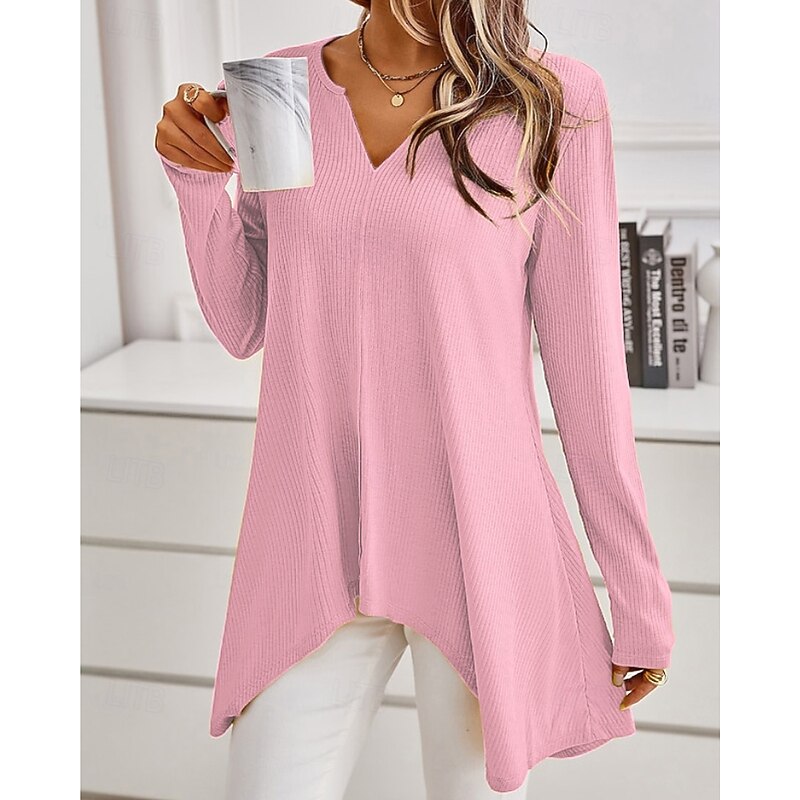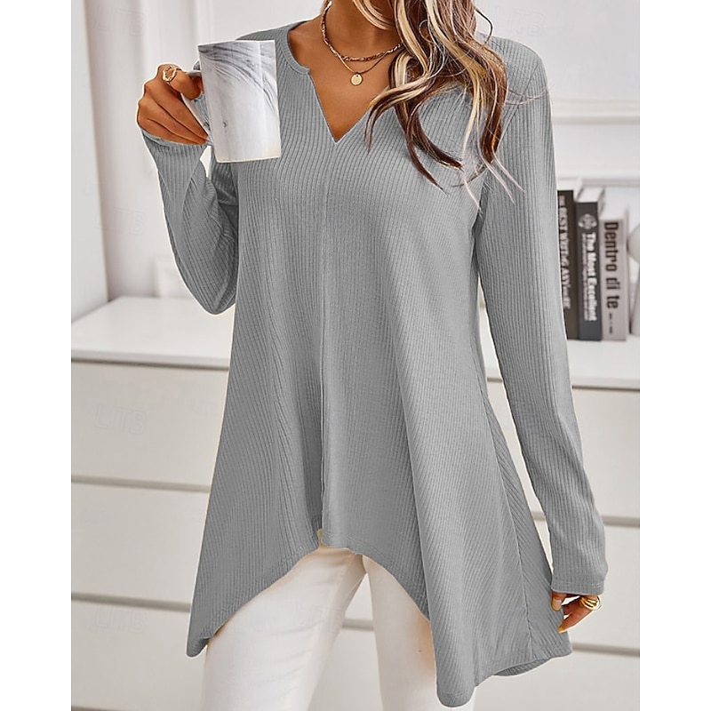 More information about Women's Sweater Casual Solid Color Ribbed V Neck Knitted Asymmetric Hem Long Sleeve Regular Tops Knit Daily Holiday Going out Black White Fall