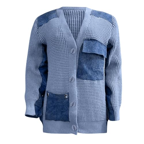• Material & Comfort: Crafted from a soft knit blend of polyester and cotton, this chunky cardigan sweater offers lightweight comfort and durability, with trendy denim patchwork accents for added texture. The chunky knit construction allows for breathability while providing cozy insulation, making it become a nice choice for crisp autumn days and indoor comfort.