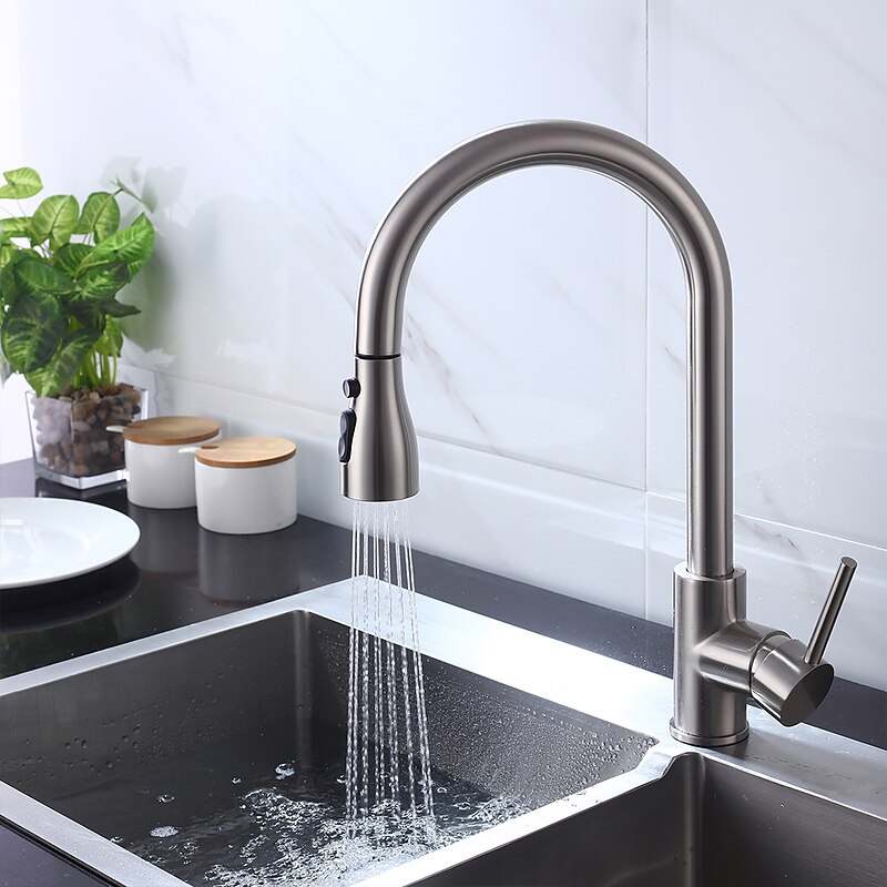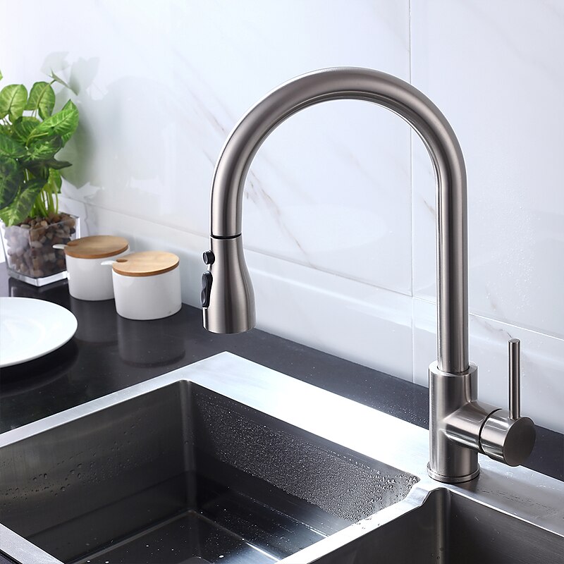 More information about Kitchen Faucet - Single Handle One Hole Chrome / Nickel Brushed / Electroplated Pull-out / Pull-down / Standard Spout Centerset Modern Contemporary Kitchen Taps