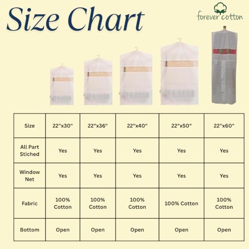 Garment Bags for Hanging Clothes – 100% Cotton, Breathable Suit & Dress Covers – Pack of 3 Medium (22"x40") for Jackets, Sarees, Blouses, Coats, Travel & Closet Storage 5