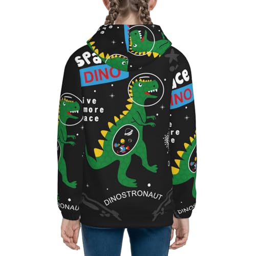 Space Dino Cartoon Black Kids Pullover Hoodies Boys Zip Up Sweatshirts Girls Athletic Clothes with Pocket
