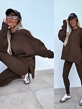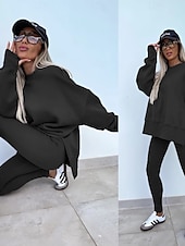 More information about Women's Tracksuits Sets Pure Color Fashion Comfort Daily Gyms Cotton Blend Breathable Crew Neck Long Sleeve Hoodie Pant Spring Fall Home Outfits