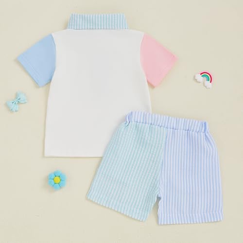 Toddler Baby Boy Fathers Day Outfit I Love Dad Color Block Collared Button Shirt Stripe Shorts Set Summer Clothes 7