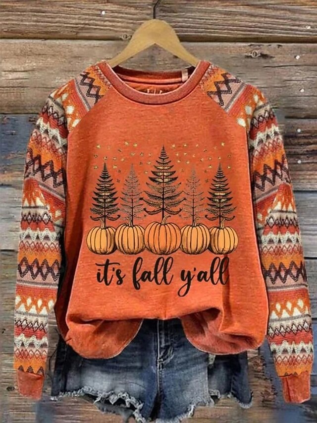 More information about Halloween Women's Pullover Sweatshirt Pumpkin Graphic Striped Fashion Casual Long Sleeve Crew Neck Regular Tops Street Dailywear Casual Print Black Green Beige Fall Winter