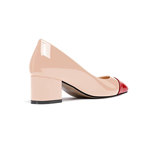 WAYDERNS Women's Patent Dating Square Toe Fashion Multicolor Patchwork Slip On Cap Toe Chunky Low Heel Pumps Shoes 2 Inch 5