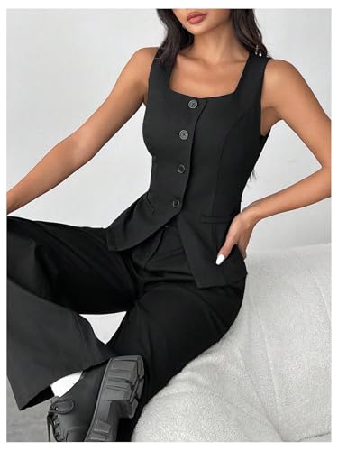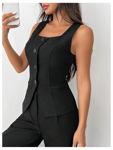 Floerns Women's Elegant Sleeveless Button Front Vest Split Hem Business Suit Jacket 1