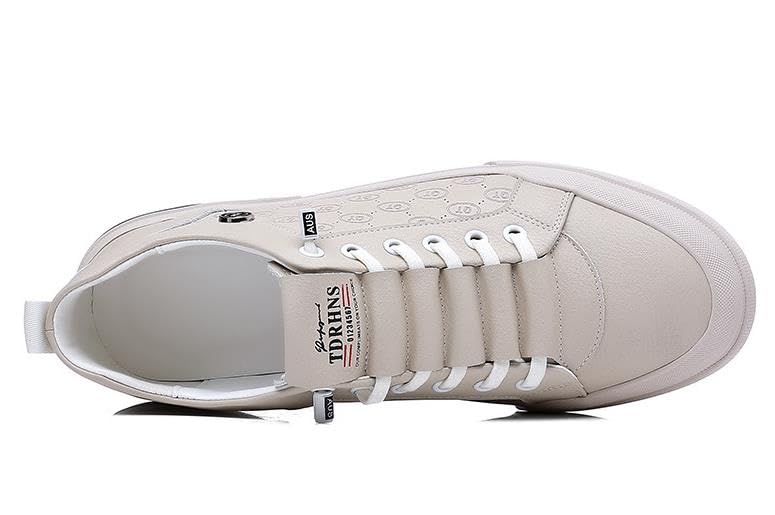Men's Fashion Sneakers Leather Casual Shoes Dress Sneaker Oxford Shoes White/Khaki 6