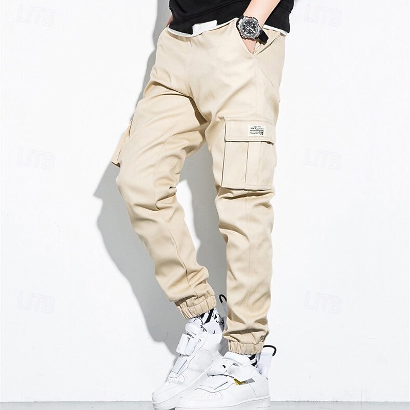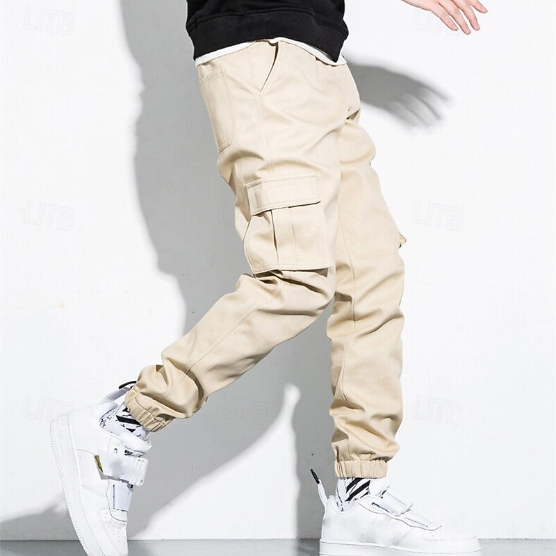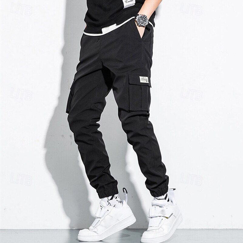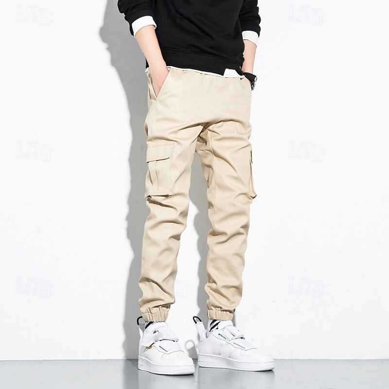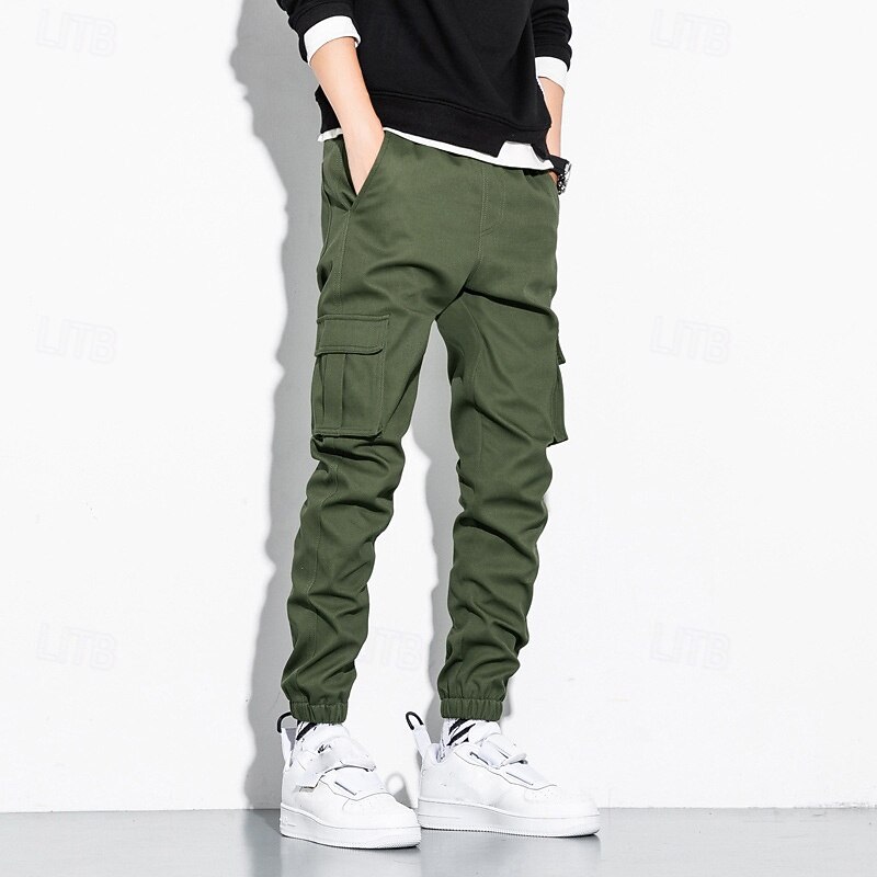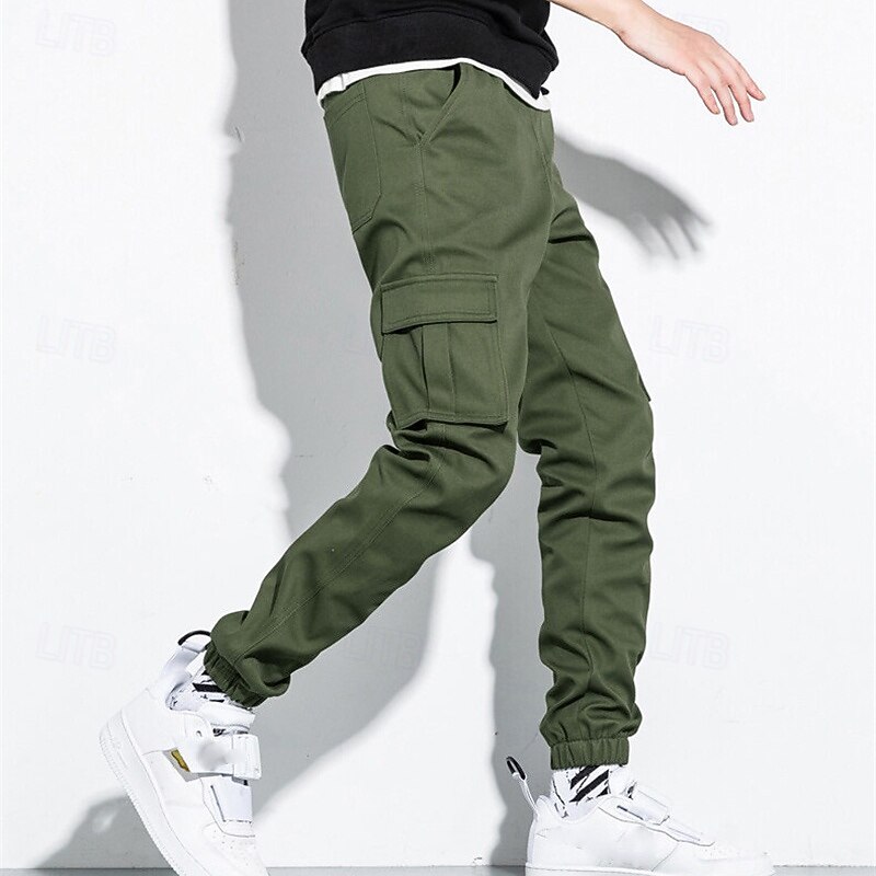 Highlights [Fabric] : These men's cargo jogger pants are crafted from 100% high-quality cotton, offering excellent breathability, softness, and durability. The fabricβs durability ensures they withstand daily wear and outdoor adventures, making them an ideal choice for active lifestyles. [Fit] : Featuring a regular fit, these pants provide a relaxed and comfortable experience. The elastic waistband and cuffs offer an adjustable and secure fit, allowing for ease of movement throughout the day. [Design Highlights] : The pants boast a classic design with a functional twist. They are equipped with multiple cargo pockets for enhanced utility, perfect for storing essentials while on the move. The drawstring waist adds an extra layer of adjustability, ensuring a snug fit. Available in a variety of versatile colors including Black, Gray, Army Green, and Khaki, these pants are a fashionable addition to any wardrobe. [Occasions] : Suiting a wide range of scenarios, these cargo jogger pants are perfect for both daily wear and outdoor activities such as camping and hiking. Whether it's a casual outing or an adventurous day trip, these pants are designed to meet the demands of varied settings while maintaining a fashionable appearance. [Size Range] : Available in a broad size range from S to 5XL, these pants cater to a wide spectrum of body types, ensuring that you can find the perfect fit for maximum comfort and style. Perfect for everyday use. superior materials and excellent craftsmanship ensure long-lasting durability.
