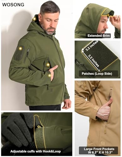 More information about Men's Hooded Softshell Jacket,Waterproof Windbreaker,Insulated,Fall Winter,Fleece Lined,Snow Rain Jackets 6 Zip-Pocket