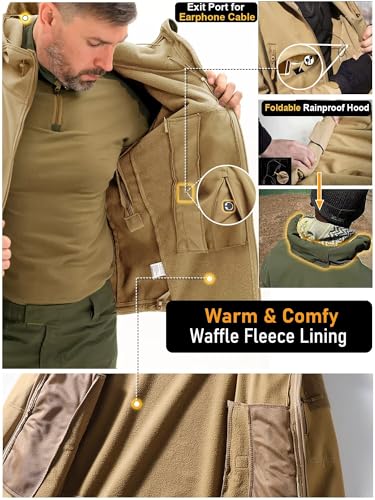 Men's Hooded Softshell Jacket,Waterproof Windbreaker,Insulated,Fall Winter,Fleece Lined,Snow Rain Jackets 6 Zip-Pocket 7