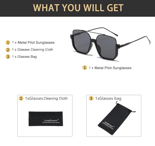 • UV400 Protection: Anti-UV400 sunglasses will keeping your eyes healthy without strain, and blocking out 100% of all UVA, UVB. Long Keeper square pilot sunglasses with UV400 protection coating lenses are essential to protect your eyes against long-term UV damage and keep your eyes healthy when out and about.