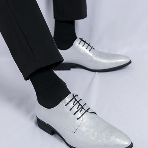 Men's Patent Leather Lace - Up Dress Oxfords: Retro Print, Low - Top, Pointed Toe. Non - Slip Chunky Heels. Suitable for Formal, Business & Wedding, Casual - Friendly. 5