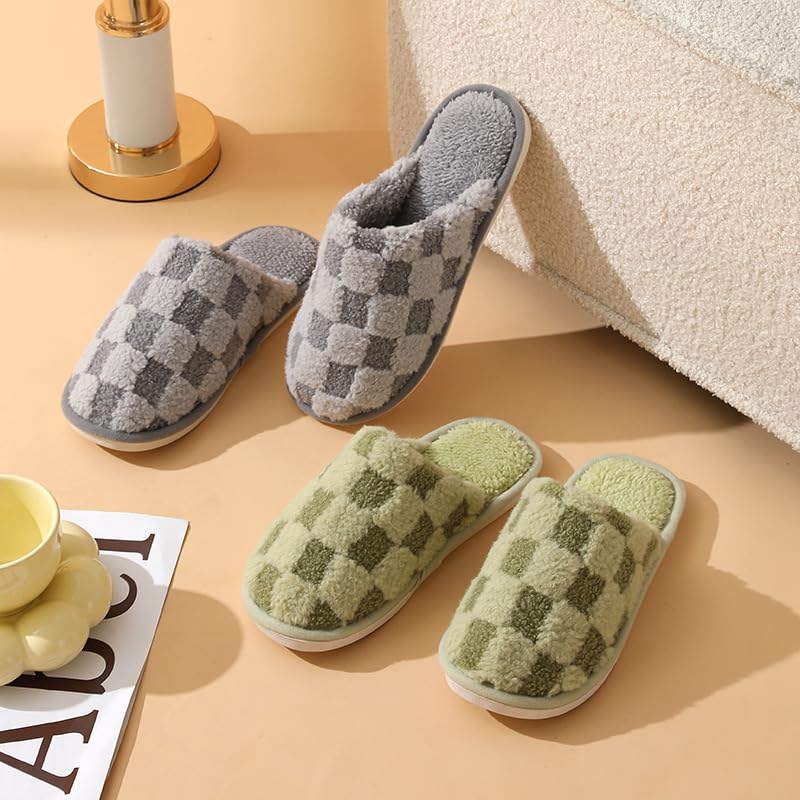 HOT ! Loizziuy Checkerboard Plush Slippers Winter Warm Cotton Shoes Home Slippers Indoor for Women Furry Shoes Accessories