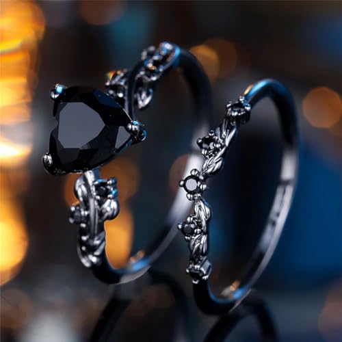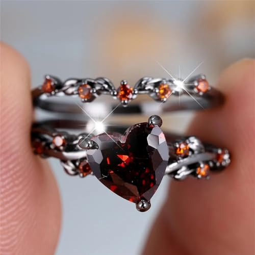 HOT ! New 2026 Female Black Red Zircon Stone Heart Ring Set Vintage Gold Color Bridal Wedding Bands Party Jewelry for Women Fashion Luxury Accessories Creative Gift