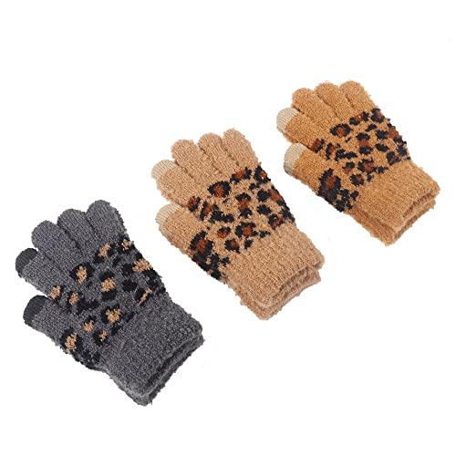 3 PCS Leopard Print Hat Scarf Glove Set Cheetah Print Knitted Beanie Touch Screen Gloves Winter thermal Gift Set