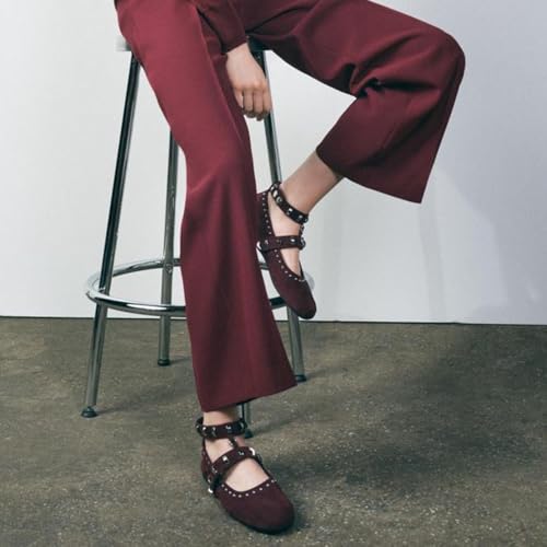 Ballet Flats Shoes for Women Ankle Strap Bow Mary Jane Shoes 4