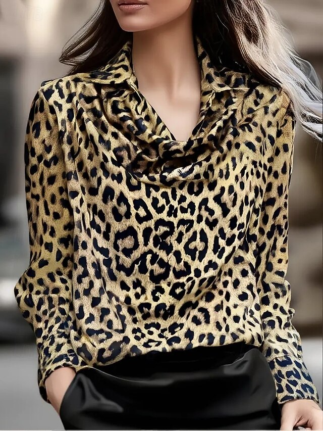 Women's Shirt Dressy Tops Formal Work Shirt Evening Tops Leopard Elegant Party Ladies Long Sleeve Collar Work Party Evening Wear Evening Party Print Leopard Spring Fall Winter Spring Fall Winter 5