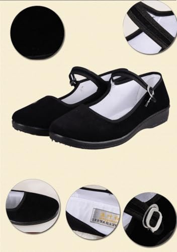 Womens Cotton Mary Jane Shoes China Doll Ballet Flats Shoes,Black 5