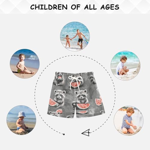 Pigsaly Boys' Swim Board Shorts Watermelon Grey White Funny Raccoon Boy's Swim Trunks Kids Swimwear XS 3