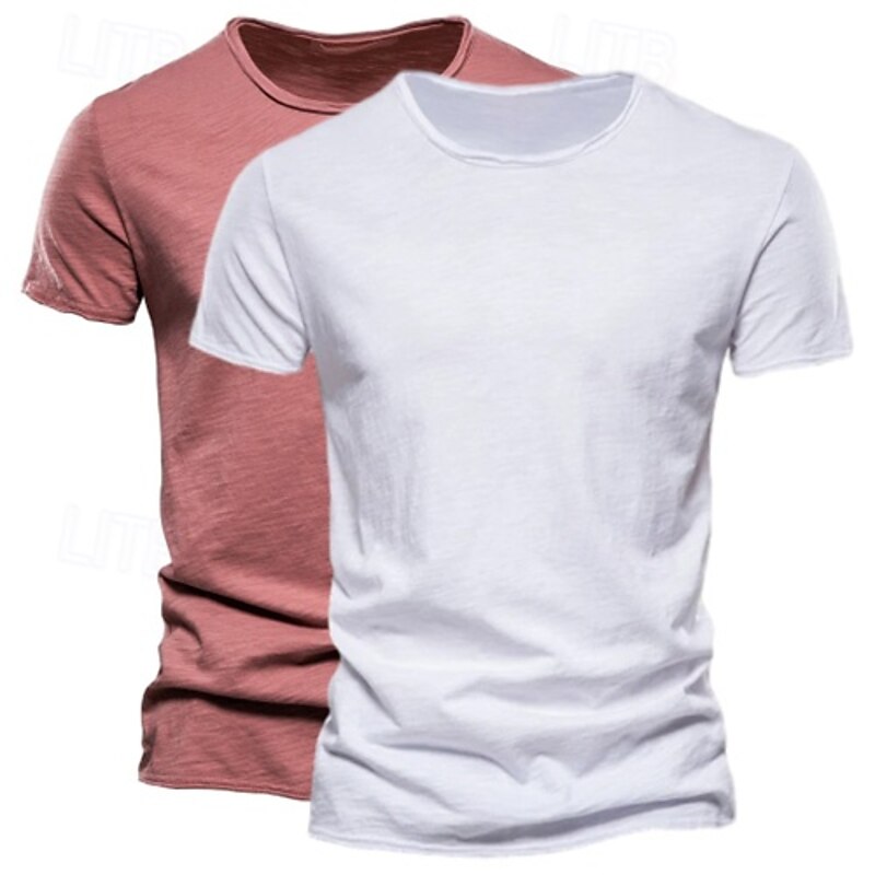 2 Pack Cotton Men's T Shirt Tee Top Short Sleeve Short Sleeves Crew Neck Round Neck Summer Plain Fashion Designer Basic Classic Style Basic Vacation Street Casual Orange Blue Army Green  Black Tee 25