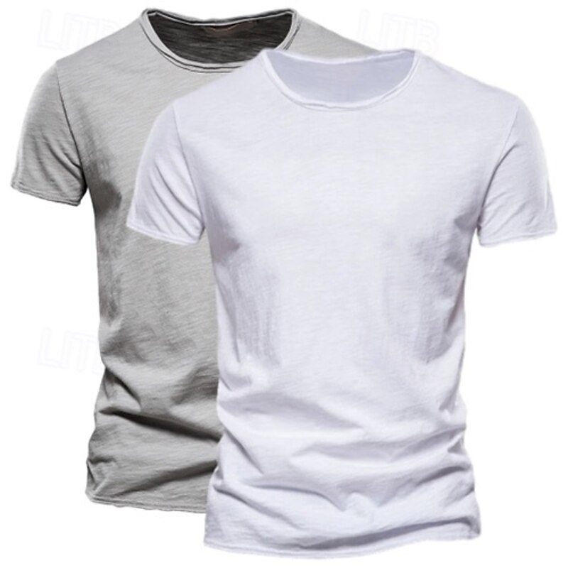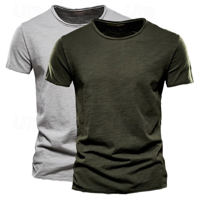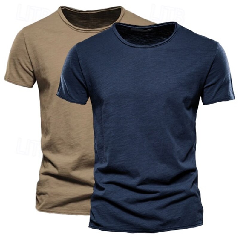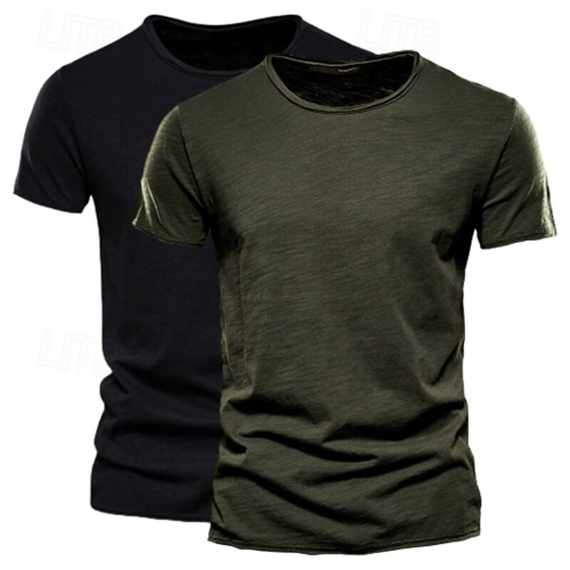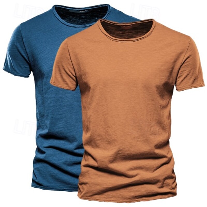 More information about 2 Pack Cotton Men's T Shirt Tee Top Short Sleeve Short Sleeves Crew Neck Round Neck Summer Plain Fashion Designer Basic Classic Style Basic Vacation Street Casual Orange Blue Army Green Black Tee