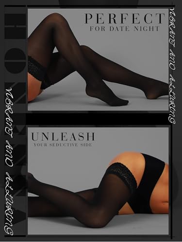 Why Choose HONENNA Semi Sheer Stay Up Lingerie Thigh High Stockings Lace Top Size A-F?