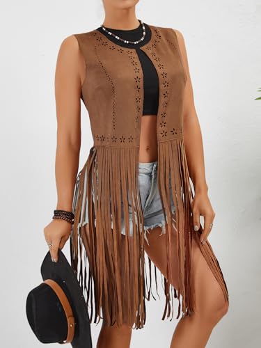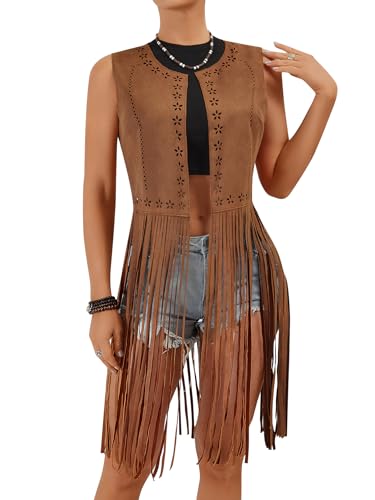 Why Choose Verdusa Women's Fringe Trim Suede Vest 70S Hippie Open Front Cardigan Jacket?