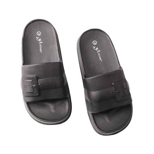 • 【Sleek & Modern Design】These black EVA slides feature a ribbed strap design and minimalist aesthetic, adding a trendy touch to casual outfits. Their versatile style suits both indoor lounging and outdoor errands, making them a fashionable choice for various occasions.