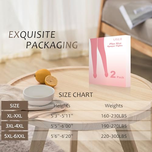 • PLUS SIZE TIGHTS FOR WOMEN,RESOLVE YOUR SIZE ISSUE:Our market research team has collected a large amount of size data for plus size women and designed this exclusive 80D opaque tights for them.Provides standard sizes of 1xl-6xl,The comfortable size greatly enhances the comfort and fit of wearing.Find your own size in the size chart on the page and be your plus size girl.