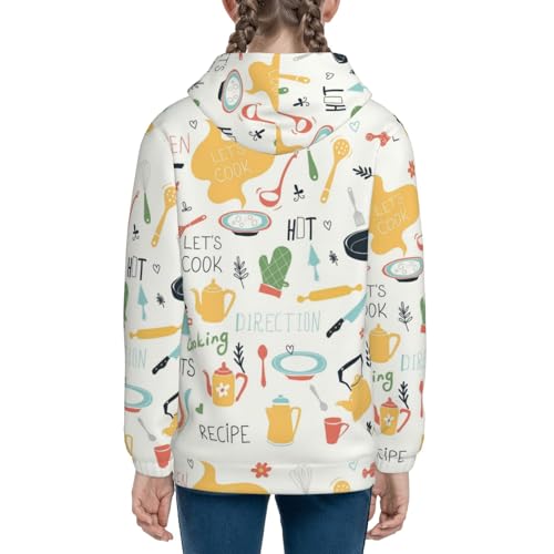 Kitchen Doodle Pattern Kids Pullover Hoodies Boys Zip Up Sweatshirts Girls Athletic Clothes with Pocket