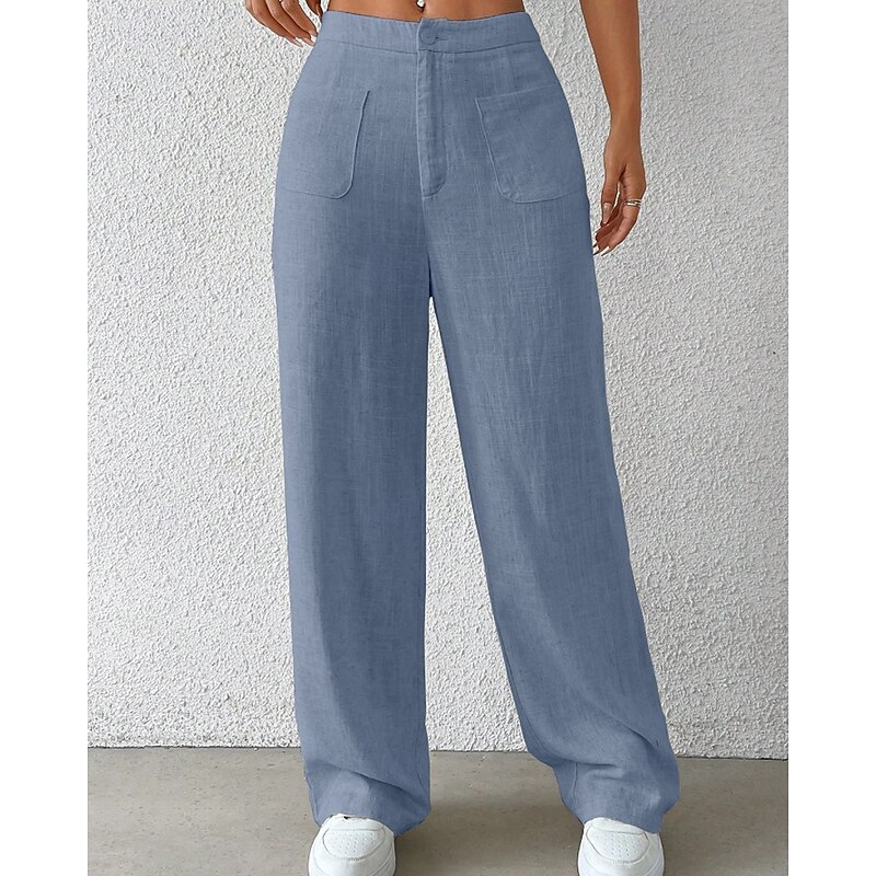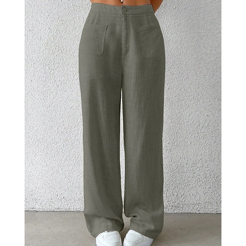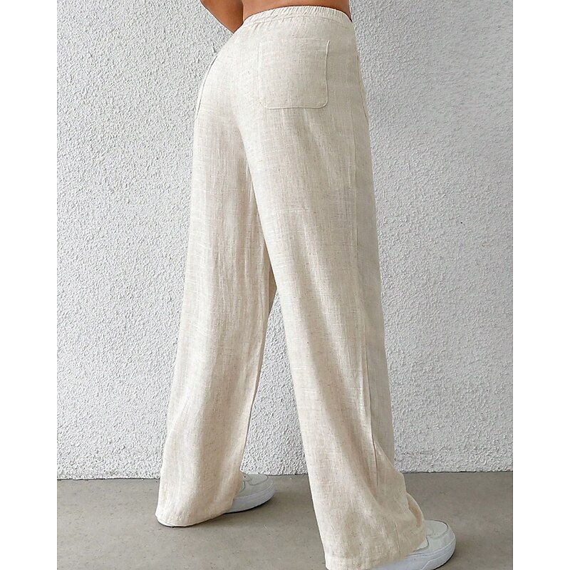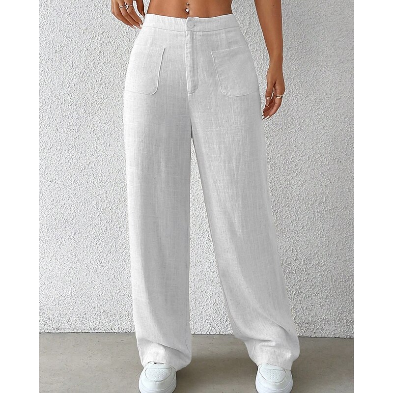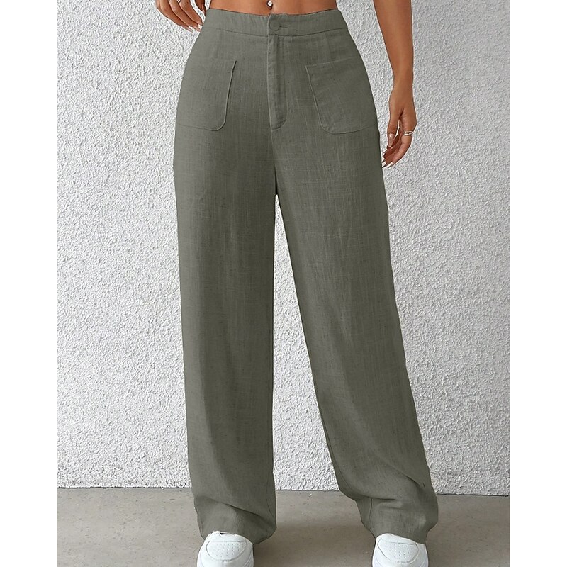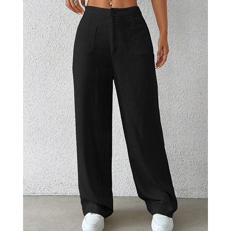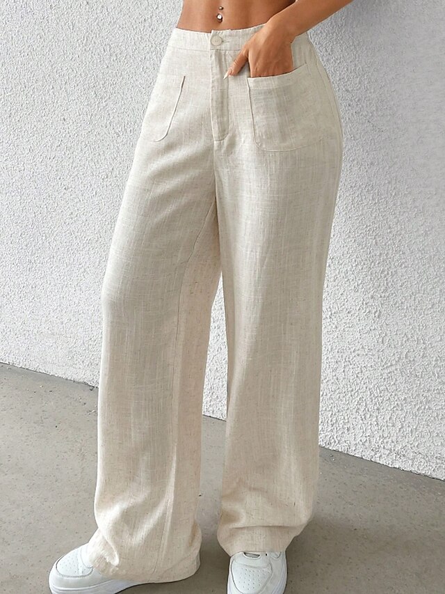 More information about Women's Wide Leg Slacks Streetwear Casual Full Length Natural Plain Pocket Comfortable Outdoor Vacation Daily Apricot Fall Regular Fit