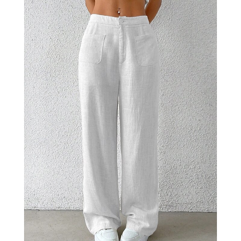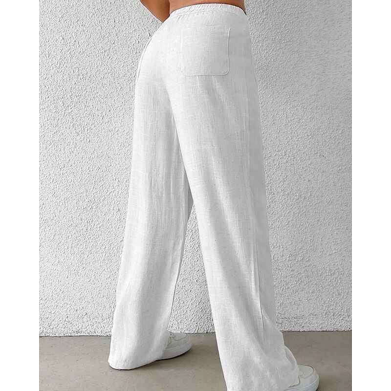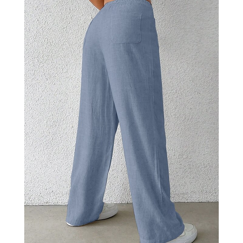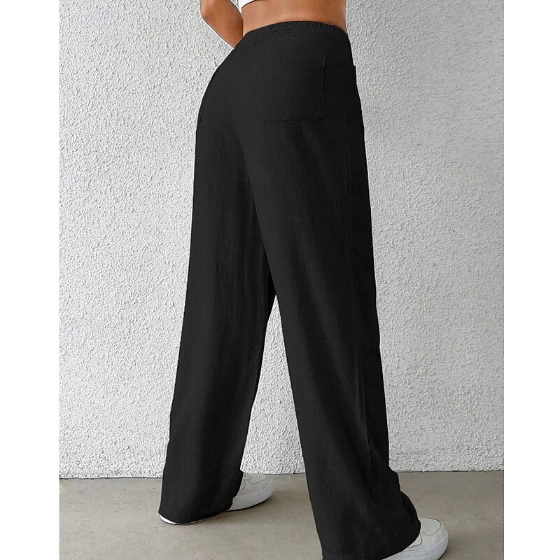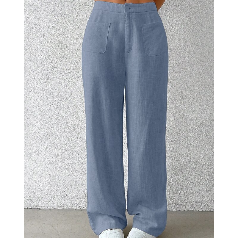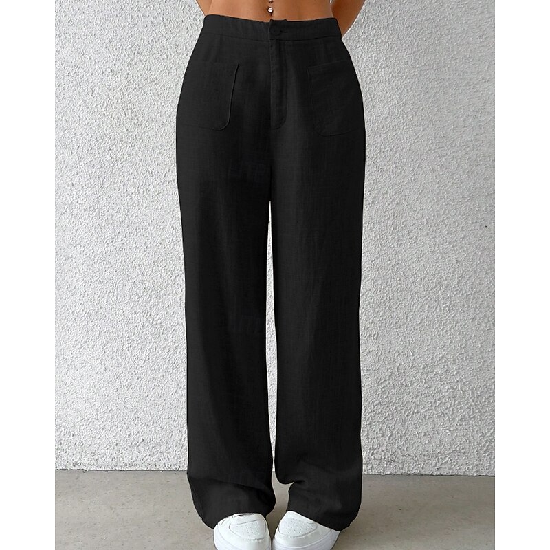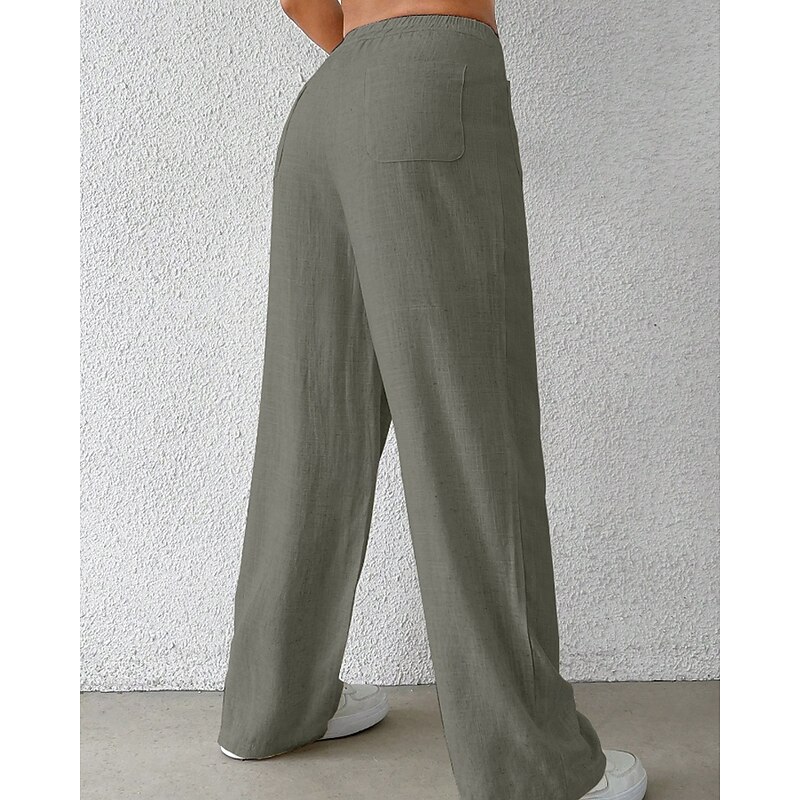 More information about Women's Wide Leg Slacks Streetwear Casual Full Length Natural Plain Pocket Comfortable Outdoor Vacation Daily Apricot Fall Regular Fit