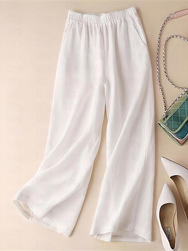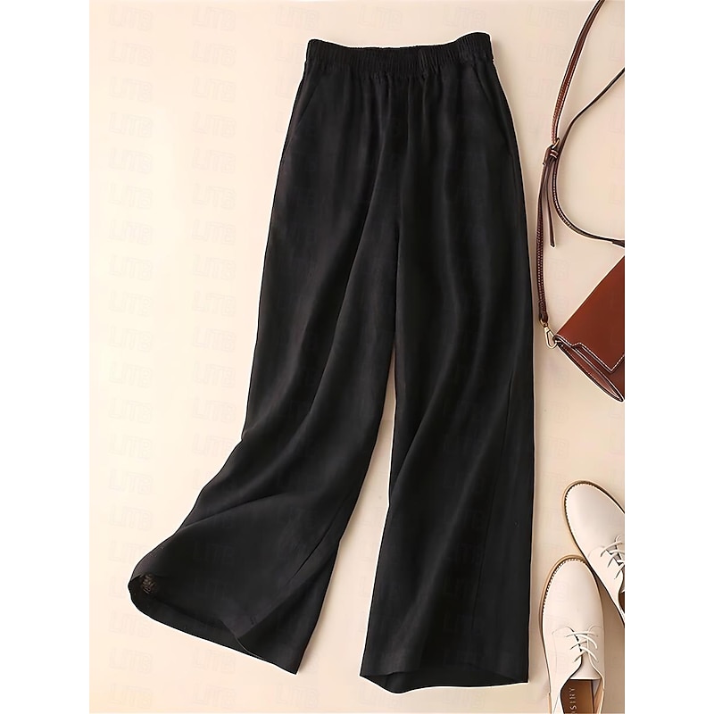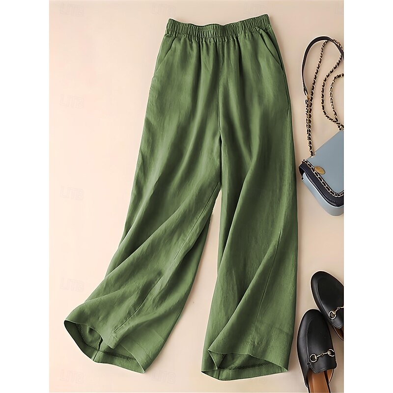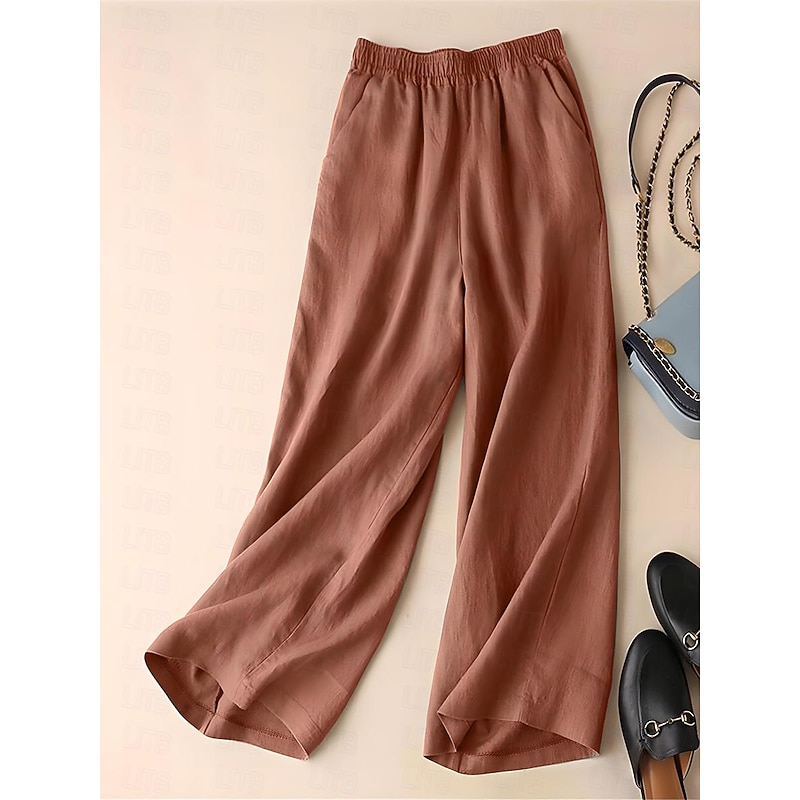 More information about Women's Wide Leg Cotton Linen Pants Chinos Fashion Streetwear Simple Ankle-Length High Waist Plain Maillard Pocket Elastic Waist Baggy Comfort Breathability Soft Micro-elastic Vacation Daily Daily