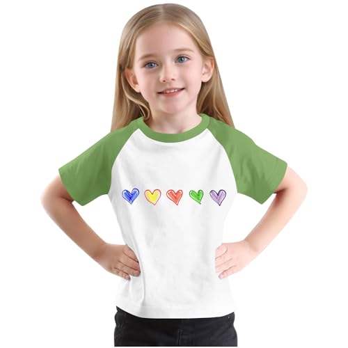 Girls Rainbow Cute Heart Print Tops Color Block Loose Crewneck Summer T-Shirts Kids Basic Short Sleeve Tees for 3-14 Years 7
