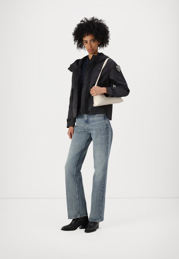 Details : Covered fastener, button row, rhinestones, lined fastener, elasticated waist
