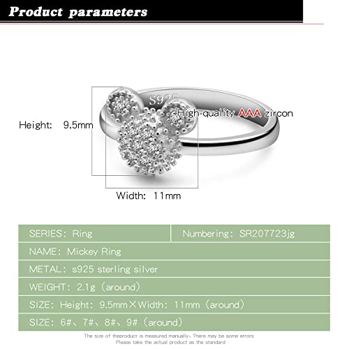Ring size: 6#Material: MetalMetal type: Silver rhodium platingGem type: 方晶皓石Classic Italian Style - This 925 sterling silver Mickey Ring adds a touch of glamour to your everyday look. Professional handcrafting creates a sporty and shiny sheen that creates a modern and polished look. Mickey avatar shape, not too thick, only the proper volume, cool feminine contours. It's the perfect ring for everyday wear, whether it's casual jeans and a T-shirt or dress. For fashion fashion declarations, wear and overlay and stratify with other pieces.Pure 925 sterling silver and nickel-free - This jewellery is made from 92.5% sterling silver and is a great choice for people with very sensitive skin. One of the brightest metals in the world, sterling silver brings a dazzling brilliance to your jewelry. Ring, 6# 7# 8# 9# number, pendant, 9.5mm height 11mm width. Weight 2.1 gMade in Italy - Italian jewellery is more than just a choice of fashion and elegance. Its rich cultural history has formed a person who still attaches great importance to creativity and passion today. Due to the high demands of the craftsmanship of luxury goods, early craftsmen opened the way for superior design and quality craftsmanship still in use today. Italian jewellery has the highest government quality standards unmatched by any other country in the world, which is a good investment.Gifts for her - an eternal and one-of-a-kind gift for a modern woman who wants to shine her personal style. For moms, daughters, sisters, wives, nieces, aunts, girlfriends, this is a perfect gift. Give someone a special gift that she will love in the next few years. Visit our store: Full selection of rings, bracelets, hoops and studs, necklaces, 925 sterling silver coin jewellery and silver 18K gold.Includes Gift Box - Jewelry is delivered in a gift box and can be treated at any time for birthdays, Christmas, Mother's Day, Anniversary, Valentine's Day, weddings, graduations, and any other holiday or special occasion gift. Perfect for everyday use. top-grade materials and excellent craftsmanship ensure long-lasting durability.