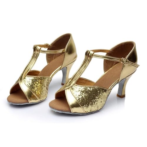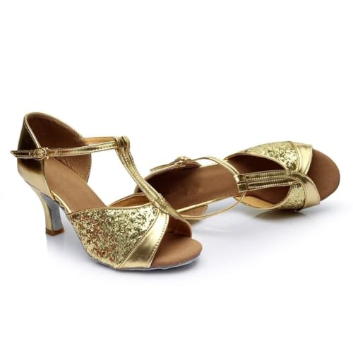 HOT ! Dance Sandals Latin Ballroom Women's Prom Fashion Color Shoes Salsa Women's Sandals Rubber Sandals for Women with Fuzzy on Top (Gold, 6)