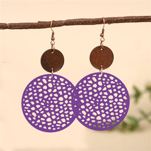 MALOYANVE Boho Wooden Earrings for Women Bohemian African Round Geometric Wood Earrings Vintage Hollow Out Circle Earrings Handmade Lightweight Dangle Drop Statement Wooden Earrings Jewelry Gifts 5