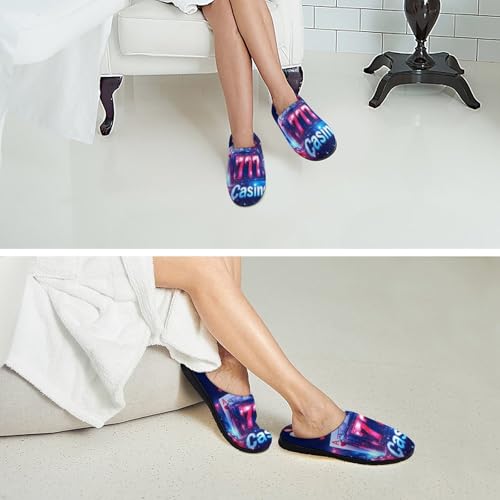 HOT ! 777 Casino Womens Cotton Slippers Anti-slip Rubber Sole Winter Warm House Shoes For Daily Wear