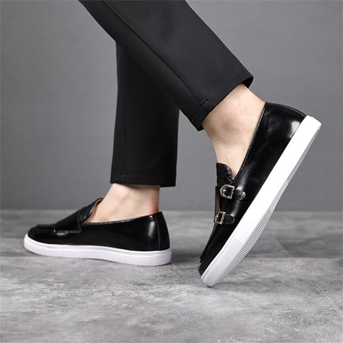Men's Patent Leather Double Monk Strap Slip On Dress Loafers Shoes with Snakeskin Pattern relaxing Flat Non-Slip Round Toe Platform Shoes for Formal Business Office Weddings Parties Proms Dating