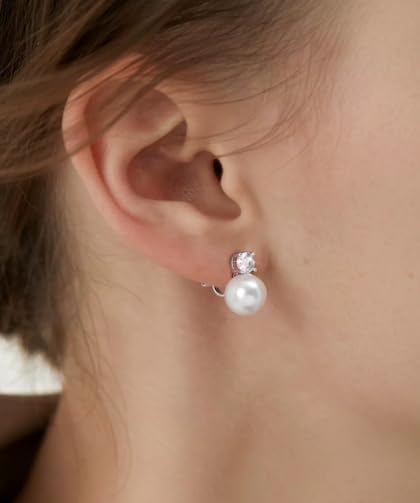 Pearl Clip on Earrings for Women - 14K Gold Silver Plated Cubic Zirconia Non Pierced Ear Clips Jewelry Gifts for Wedding Bridal Party Gifts 5