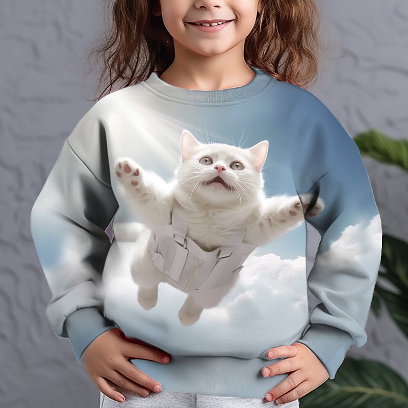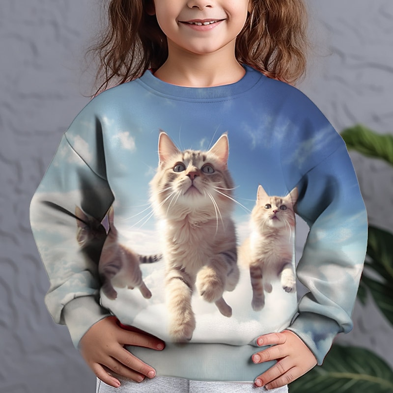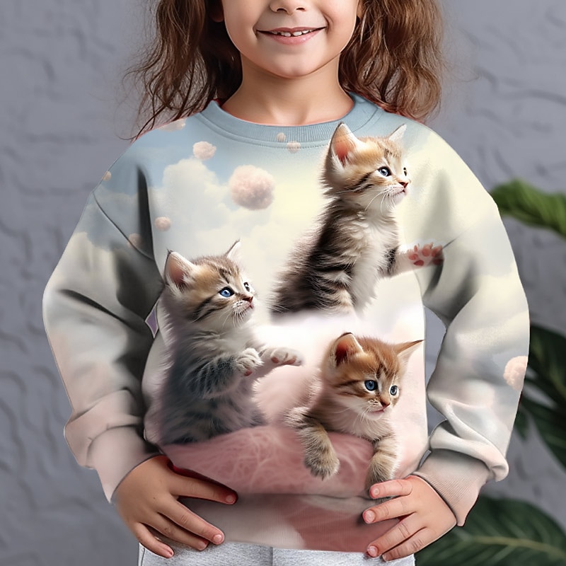 Girls' 3D Graphic Animal Cat Sweatshirt Long Sleeve 3D Print Summer Fall Fashion Streetwear Adorable Kids 3-12 Years Outdoor Casual Daily Regular Fit 3