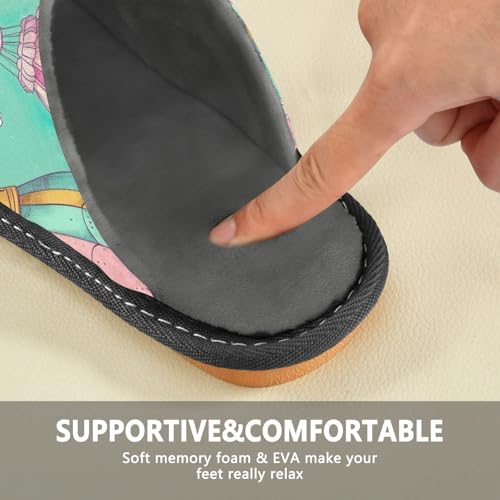 HOT ! Cute Hot Air Balloon Green Memory Foam House Slippers for Grandma Mom, Slip On House Shoes for Women Size 4-5