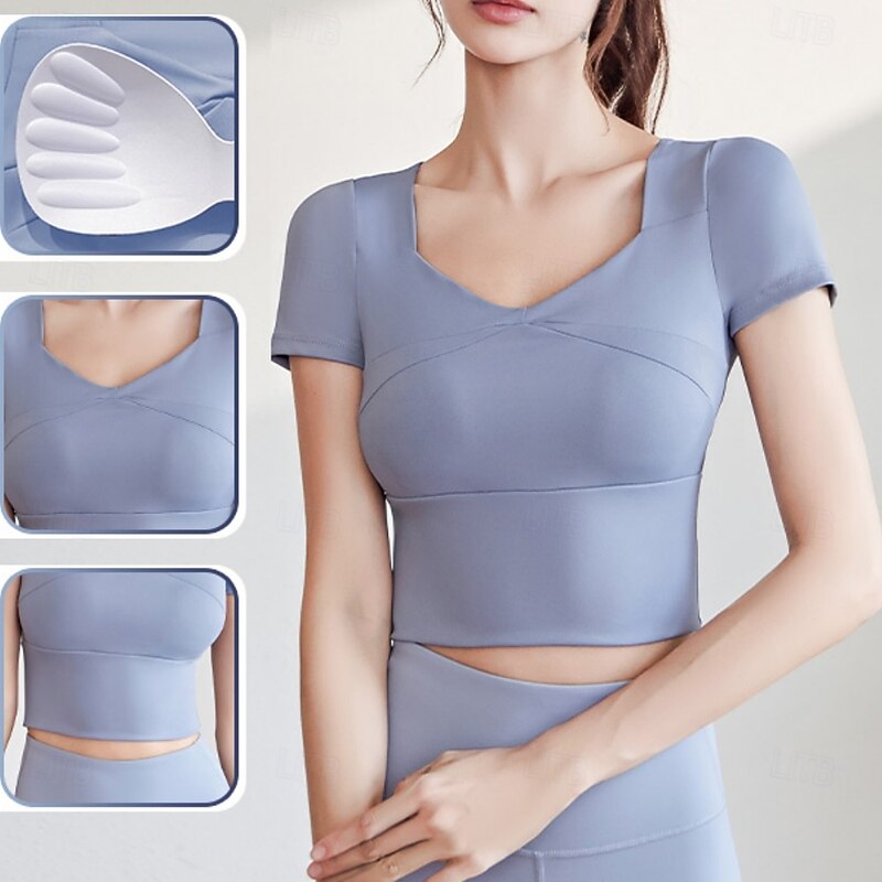 Women's Running T-Shirt Short Sleeve Tee Tshirt Casual Athleisure V Neck Solid Colored Quick Dry Soft Breathable Gym Workout Walking Jogging Sportswear Activewear Black Yellow Pink 25