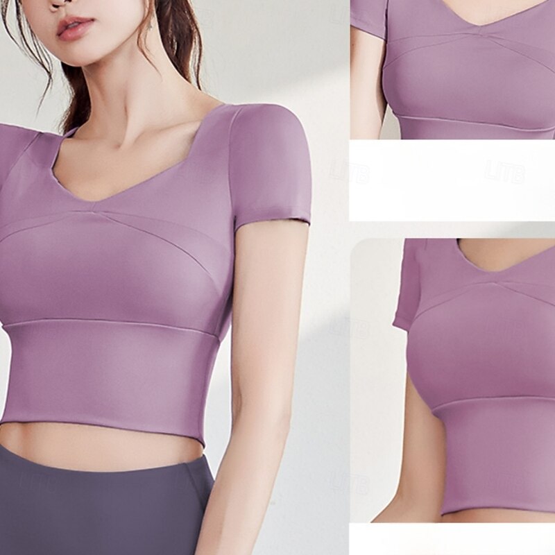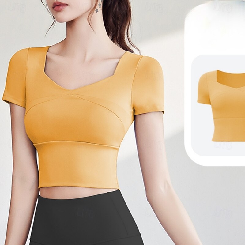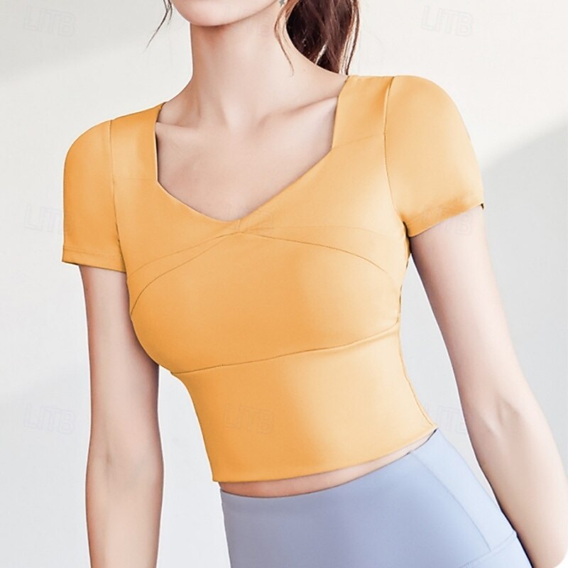 Women's Running T-Shirt Short Sleeve Tee Tshirt Casual Athleisure V Neck Solid Colored Quick Dry Soft Breathable Gym Workout Walking Jogging Sportswear Activewear Black Yellow Pink 6