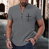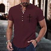 More information about Men's Shirt Popover Shirt Summer Shirt Casual Shirt Beach Shirt Button Up Shirt Wine khaki Gray Short Sleeve Classic Cross Band Collar Henley Vacation Hawaiian Buckle Clothing Apparel Fashion Casual