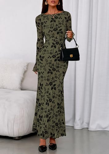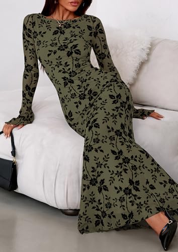 PRETTYGARDEN Women's Floral Bodycon Maxi Dress 2025 Fall Elegant Mesh Long Sleeve Formal Wedding Guest Cocktail Dresses 2