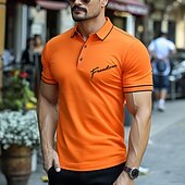 Highlights [Fabric]: Crafted from a premium polyester blend, this men's polo shirt offers exceptional comfort and breathability, perfect for warm spring and summer days. [Fit]: The slim fit design ensures a flattering silhouette that contours to the body, providing a sleek and stylish look suitable for various occasions. [Design Highlights]: Featuring a vibrant orange color, this polo shirt is accented with subtle black piping on the short sleeves for a touch of contrast. The classic polo collar and three-button placket enhance its versatile style. The chest is embroidered with the word "Freedom," symbolizing a modern and independent spirit. Intricate 3D print design adds a unique modern flair. [Occasions]: This polo shirt is ideal for vacation wear and party outfits. Whether you're on a casual outing or attending a semi-formal event, its chic design and comfort make it a perfect choice. [Size Range]: Available in sizes S, M, L, XL, XXL, and XXXL, ensuring a fit for a wide range of body types and preferences.