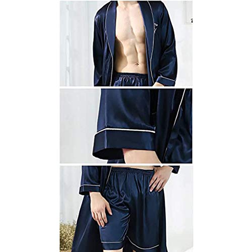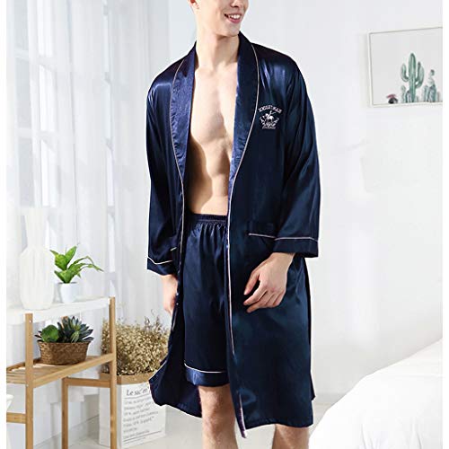 Men's Luxurious Kimono Robe with Shorts Summer Lightweight Nightgown Satin Bathrobes (Color : Blue, Size : Medium)
