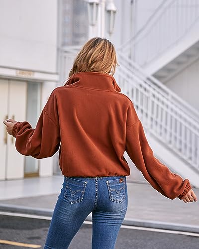 Fuinloth Women's Fleece Crop Jacket, Oversized, High Stand Collar Long Sleeve Coat 5